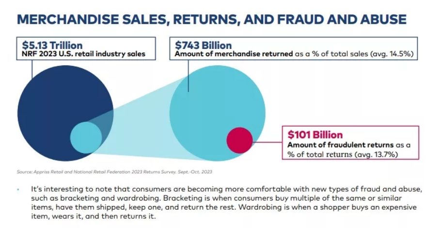 The National Retail Federation (NRF) reports that over $100 billion worth of merchandise was fraudulently returned in the U.S. in 2023, a figure that's more than doubled since 2020.