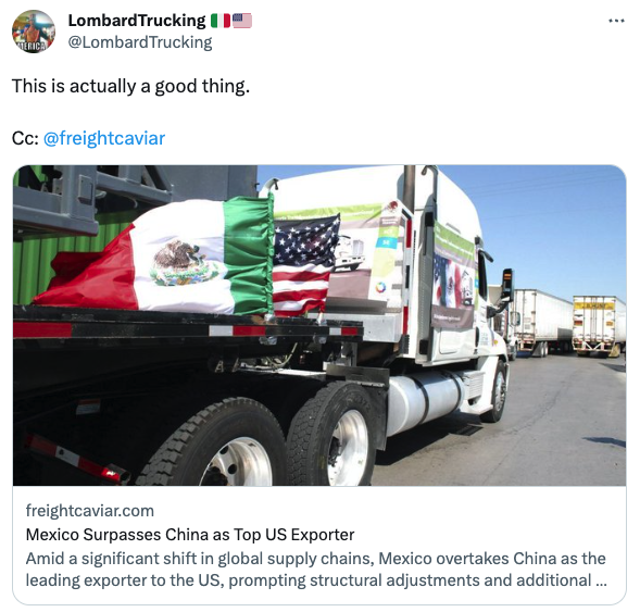 Happy Hump Day. Well, unless you've just been robbed of $100M worth of jewelry at a truck stop. Yellow’s ($YELL) stock is absolutely just sending it to the moon, seemingly en route to Mars. Mexico has now overtaken China as the top exporter of goods to the US. Meanwhile, DAT has finally implemented 2-Factor Authentication. Lastly, did you know that the founder of FedEx saved the company by gambling their last $5,000 in Vegas?