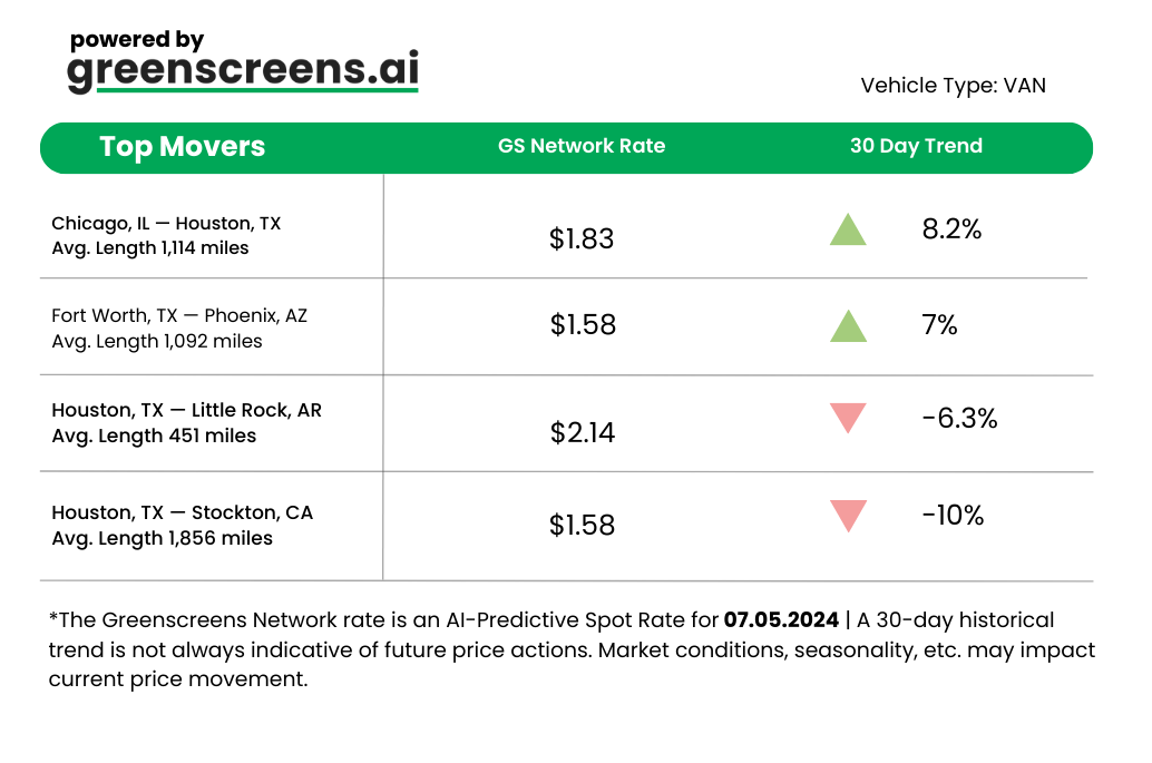 *Greenscreens.ai, forecasts real-time truckload buy prices that are suited to each freight brokerage's purchasing power using AI and machine learning. Its engine takes into account over 130 attributes and data points in each rate forecast.