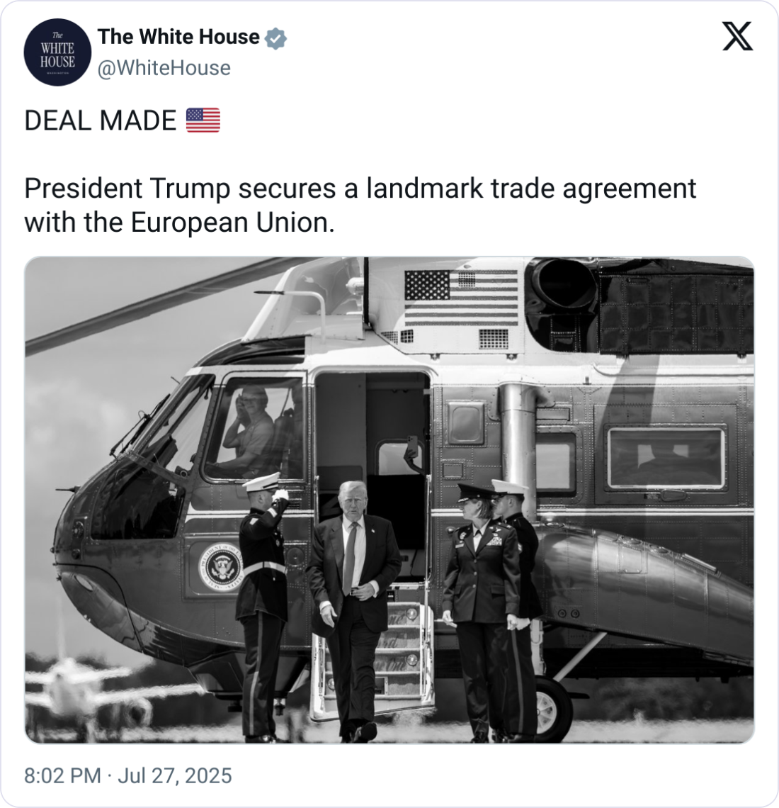 🌍 U.S. and EU Agree to 15% Tariff Deal, European Leaders Warn of Heavy Costs. The U.S. and European Union reached a deal imposing 15% tariffs on most EU goods, averting a threatened 30% hike. European officials, however, called the agreement “unbalanced,” with Germany’s BDI federation warning of “considerable negative repercussions” for exporters. Cars, pharmaceuticals, and semiconductors face steep new costs, while steel and aluminum remain at 50% tariffs. “It will bring stability. It will bring predictability,” said EU Commission President Ursula von der Leyen, though she admitted, “15% is not to be underestimated.” Economists warn the U.S. gains disproportionately, leaving Europe to absorb the majority of the immediate economic pain.