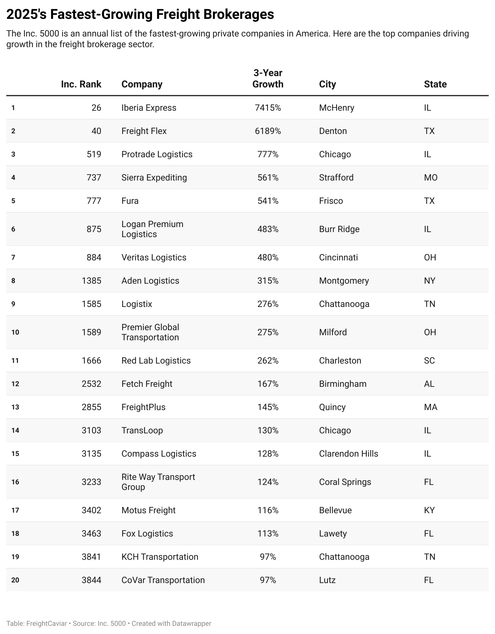 Happy Hump Day. Today’s feature spotlights the fastest-growing freight brokerages on this year’s Inc. 5000 list.