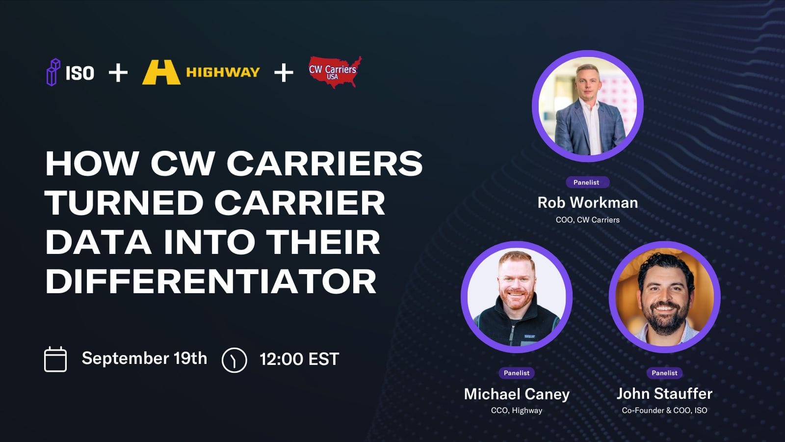 Join industry leaders from ISO*, Highway, and CW Carriers on September 19th at 12 PM EST to discover how smart data utilization can transform your carrier strategy.