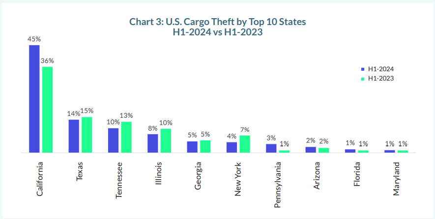 The report highlights Southern California as a critical hotspot for cargo theft:
