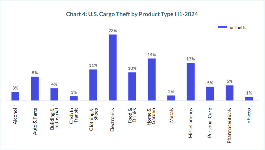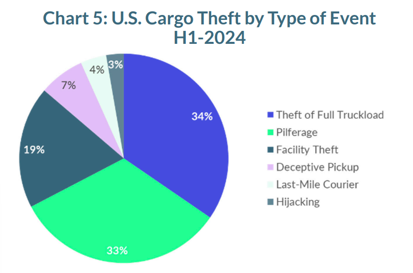 The first half of 2024 saw a concerning uptick in cargo theft incidents across the United States. Here are the key figures: