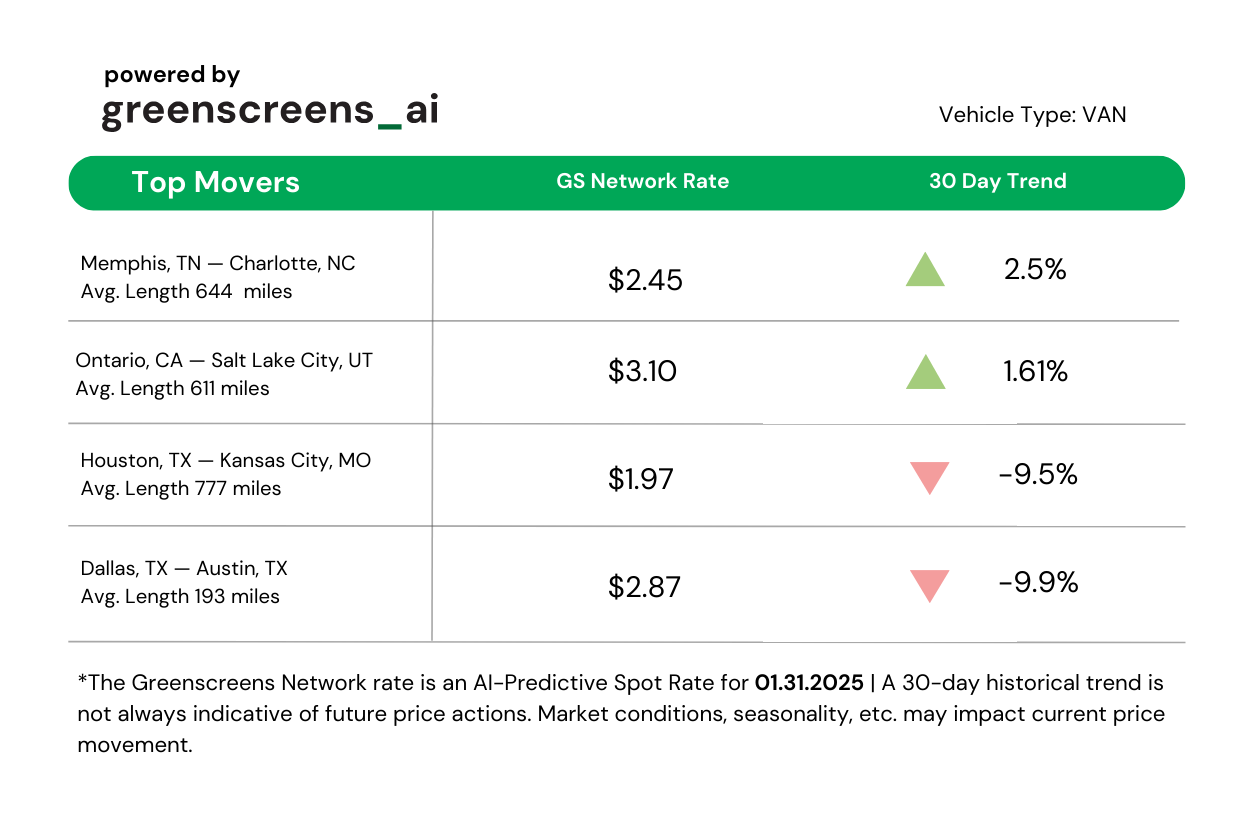 Greenscreens.ai forecasts truckload buy prices tailored to each brokerage using AI and 130+ data points.