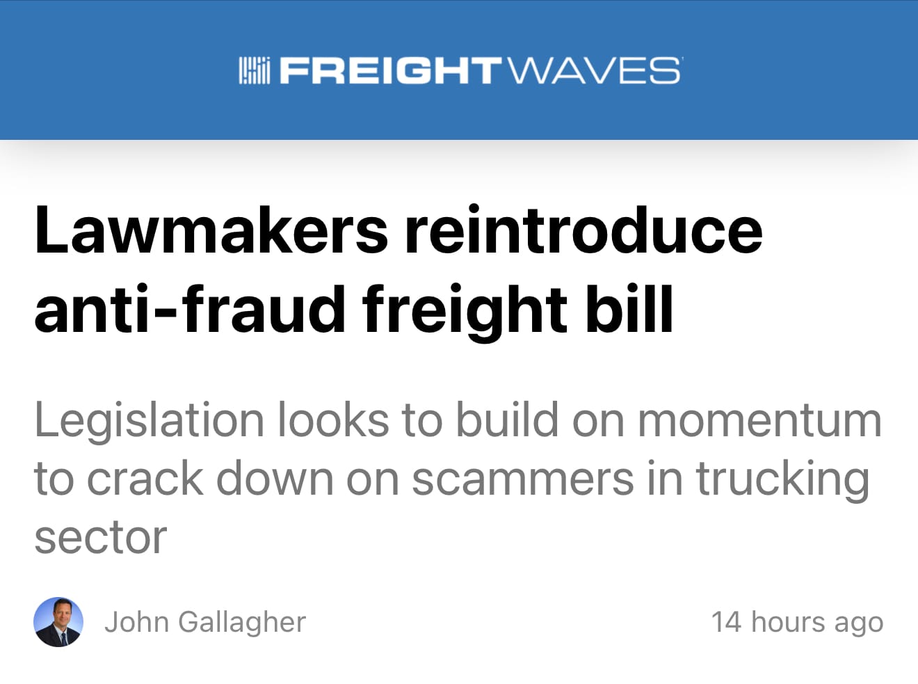 🚚 Anti-Fraud is Back. Lawmakers have reintroduced legislation to give FMCSA “explicit authority” to combat fraudulent brokers and trucking companies are exploiting regulatory gaps within the freight industry.