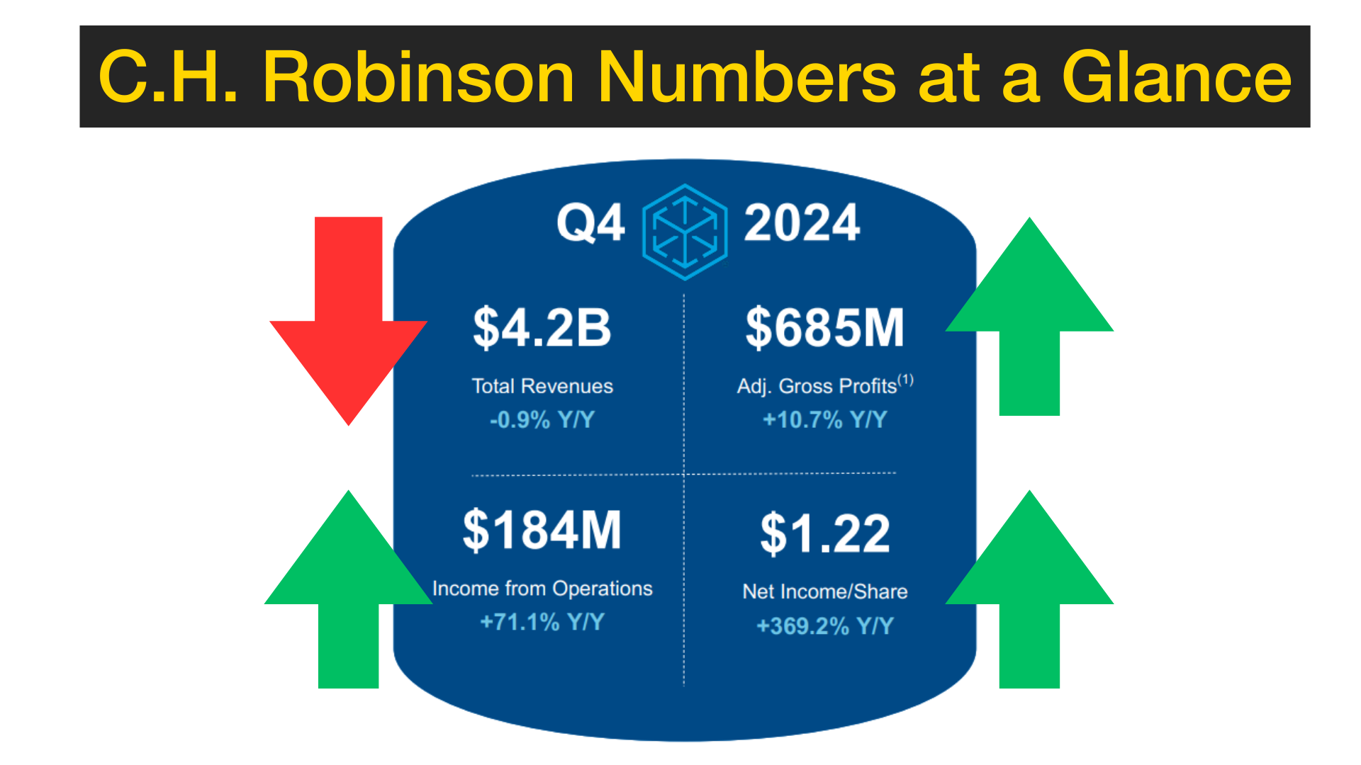 C.H. Robinson, the largest freight broker in the nation, reportedQ4 2024 net income of $149.3 million, marking a 382.1% year-over-year increase.