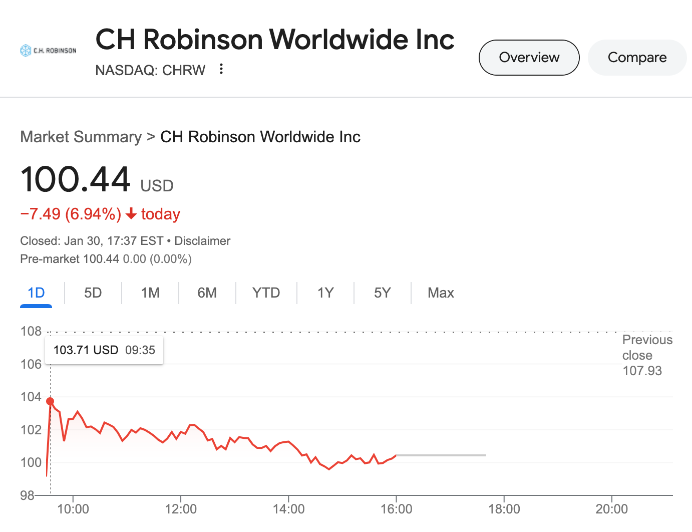 C.H. Robinson’s stock is down 6.9% since yesterday morning.