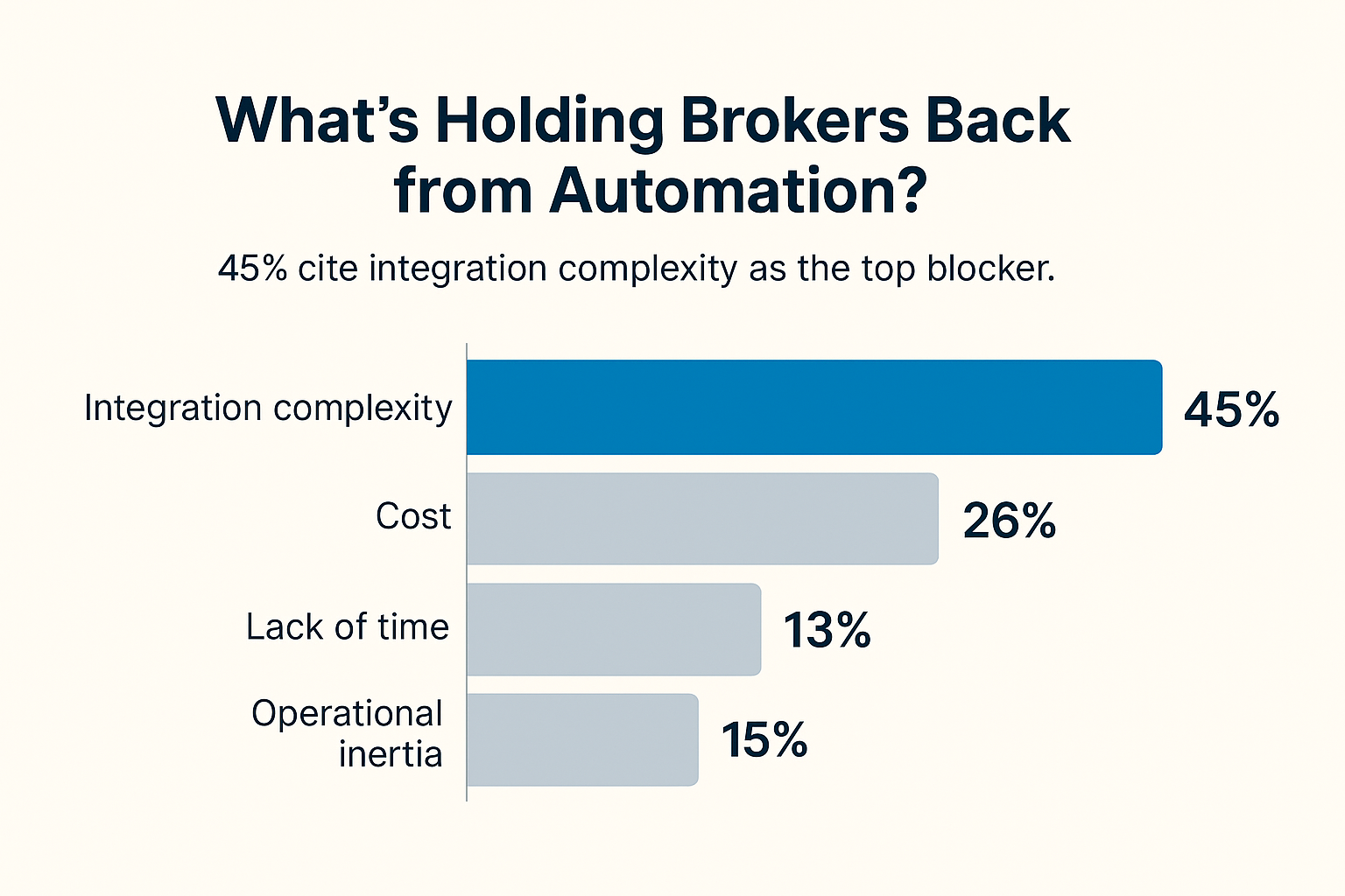 Brokers know they need automation. But 45% of them say their biggest barrier is getting tools to integrate, according to a recent FreightCaviar poll. In an industry juggling CRMs, TMSs, load boards, and onboarding portals, integration issues have become the silent killer of efficiency.