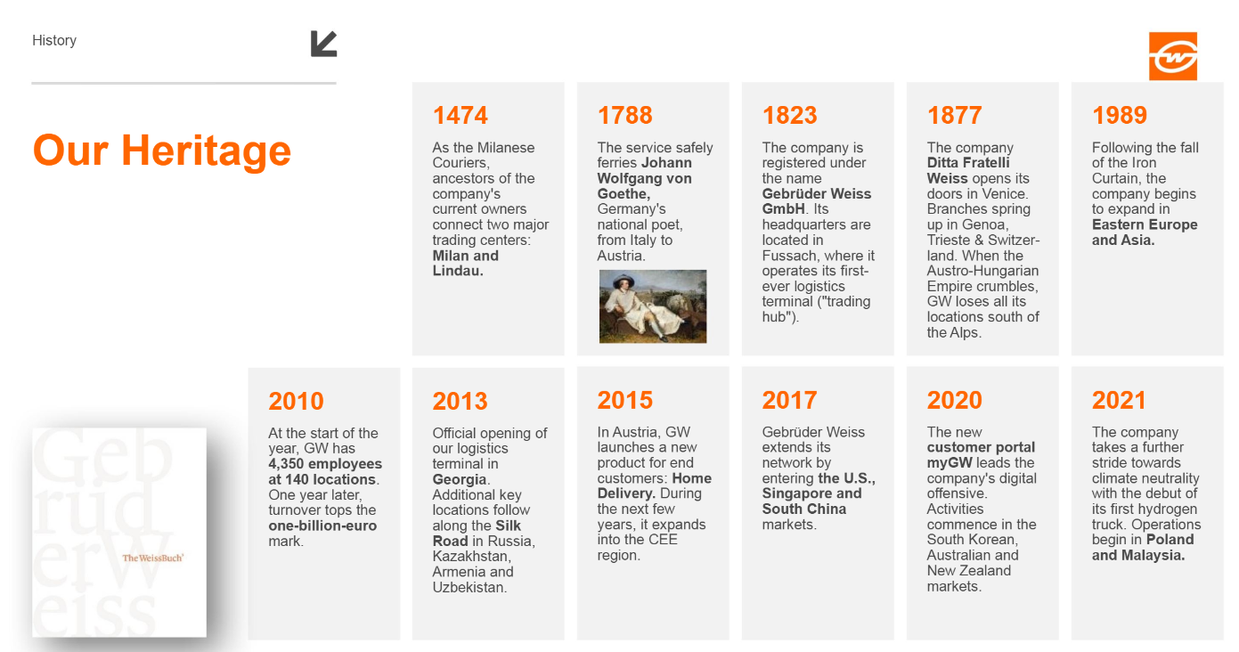 Click here to watch the history of Gebrüder Weiss on YouTube.