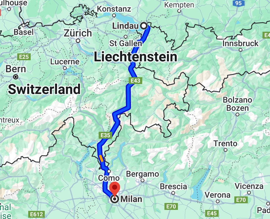 The Original Freight Route: Lindau, Germany to Milan, Italy.