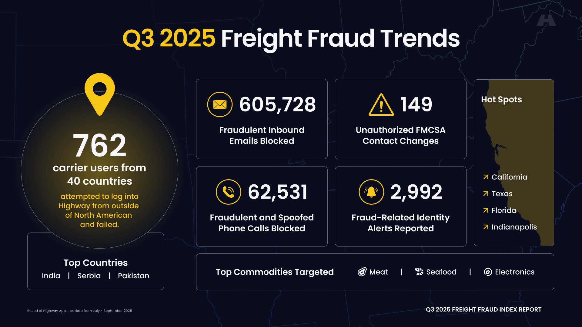 Good Monday morning. Highway's new Q3 freight fraud report reveals a staggering digital assault: over 605,000 fraudulent emails blocked. We break down the numbers and how you can protect your business from this evolving threat.
