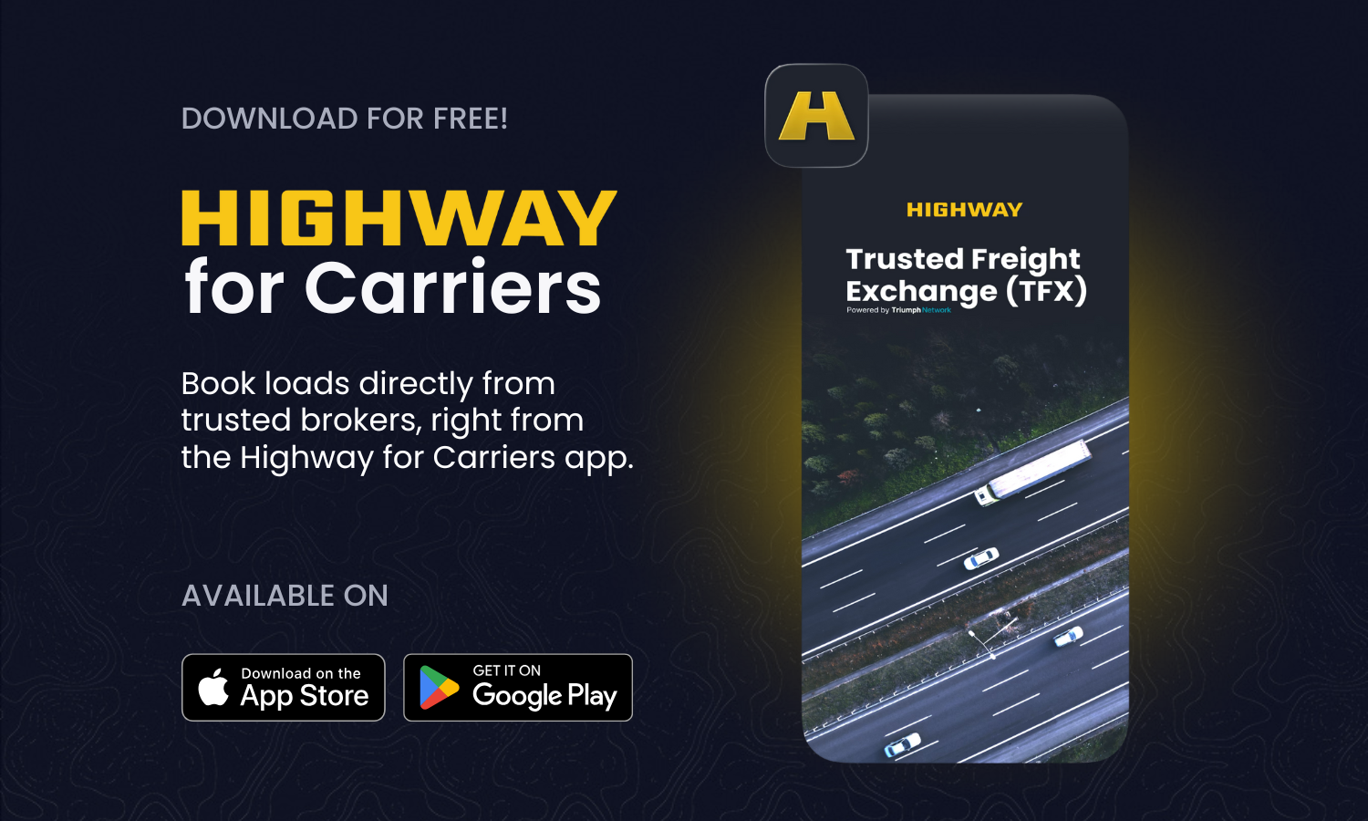 Highway has launched a free mobile app for Carriers to help you find and book real freight with verified brokers through the Trusted Freight Exchange (TFX).