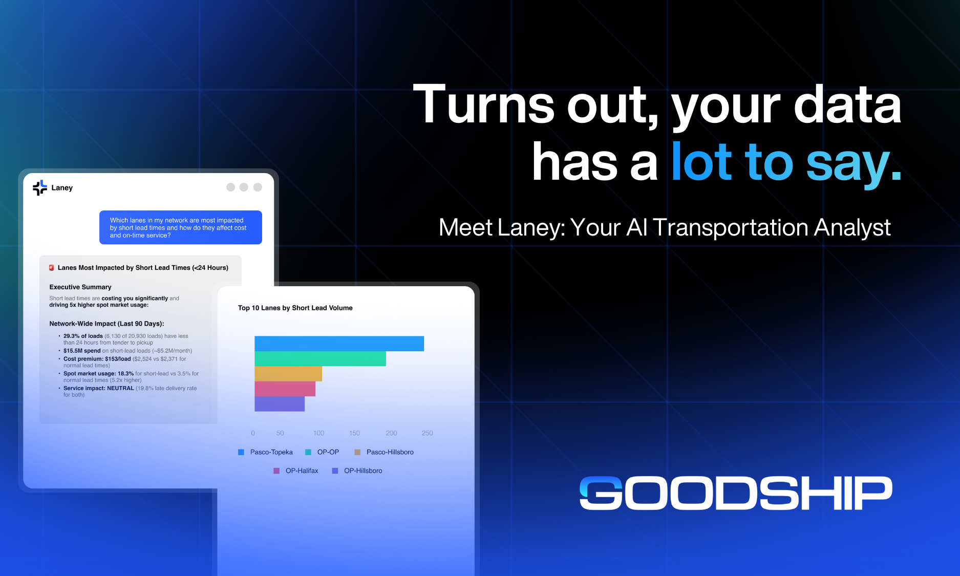 With the launch of Laney, the industry’s first AI Transportation Analyst, teams can ask questions about their operations and get clear, actionable answers in seconds through a simple, conversational interface, making it easier than ever to understand what’s happening across the network and where to improve.
