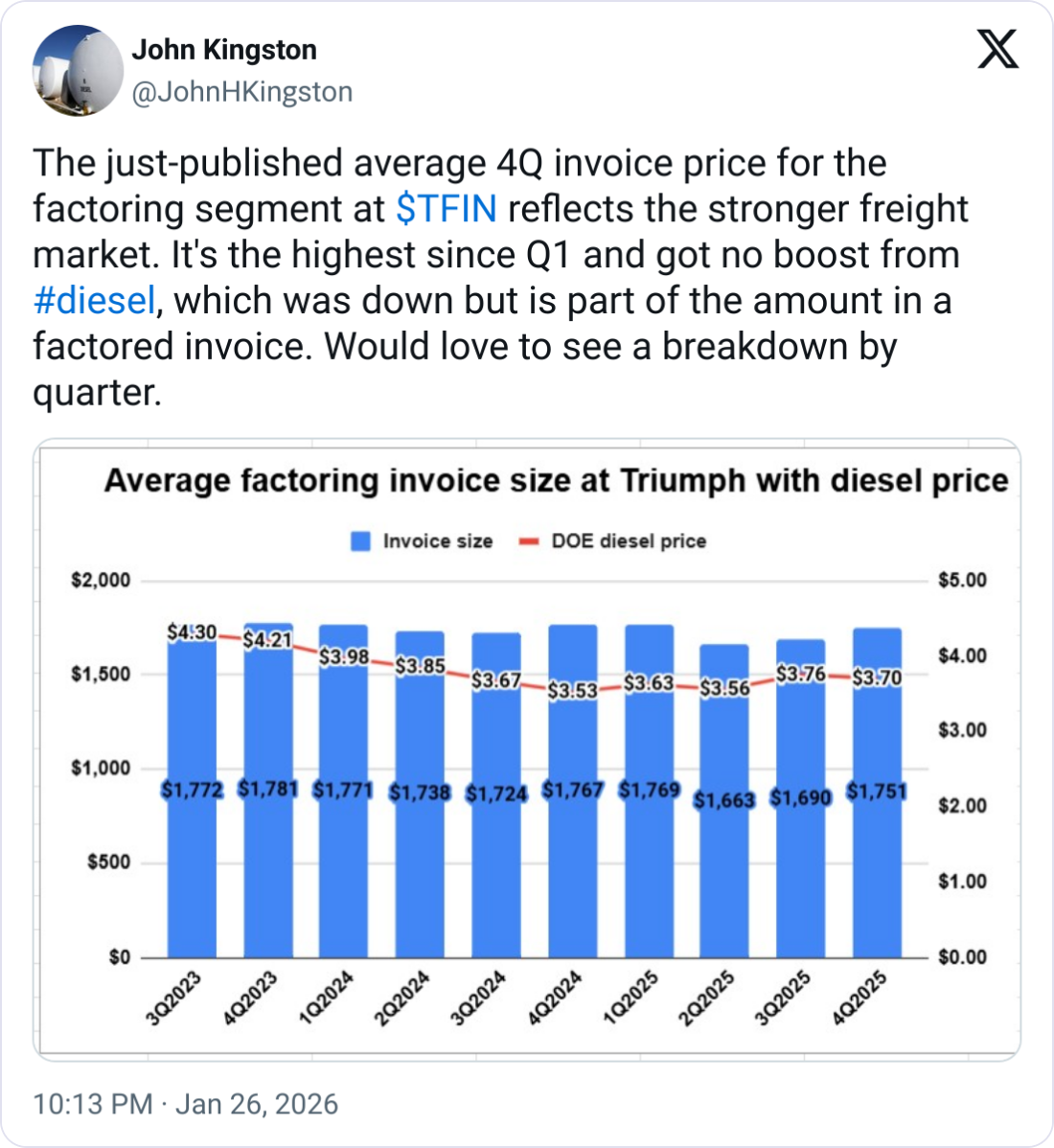 Triumph's earnings reinforce a familiar theme: the freight market is tightening through supply discipline and execution, not demand expansion.
