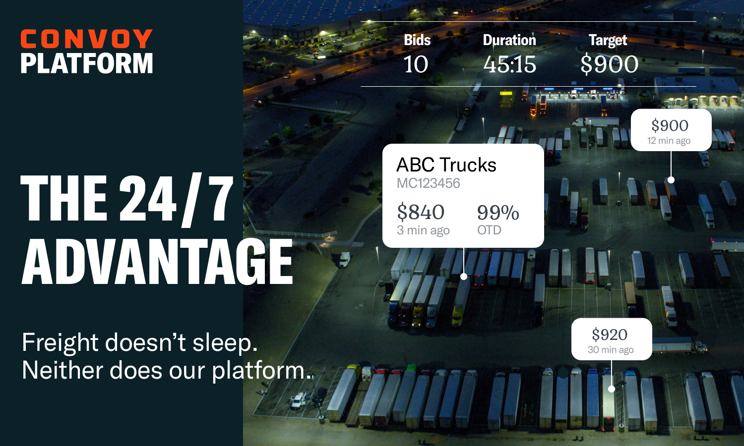The Convoy Platform gives brokers advanced freight automation—covering vetting, booking, tracking, and payments—so you can hit your targets even while you sleep.