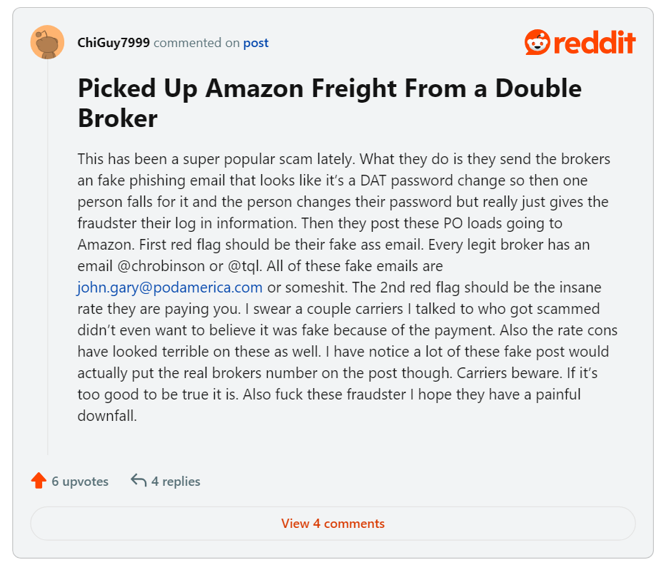 Source: Danielle Spinelli/LinkedIn | Reddit Freight Broker