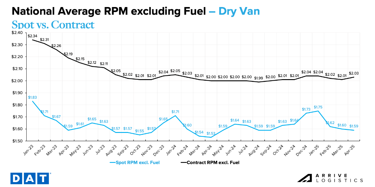 Rates have mostly held steady, but there's pressure building under the surface. Spot-contract spreads remain wide, giving brokers a buffer, but seasonality and tariffs could change the equation fast.