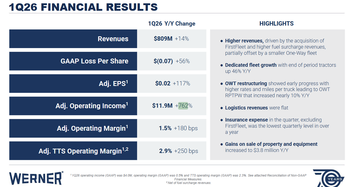 Analysts expected Werner to post a loss this quarter. Werner posted a profit instead. That's the story of Q1 2026 earnings in one sentence.