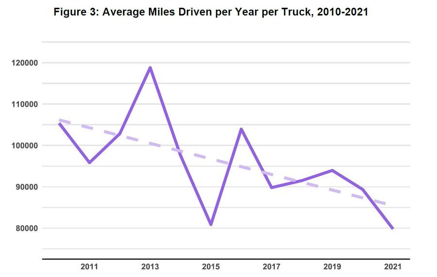📈 Truck Driver Hourly Pay. A tweet from Justin Martin highlights the decreasing average miles driven per year per truck, drawing a conclusion that the average trucker probably sees less than $20/hr. Is it time for a switch to hourly pay for truckers?
