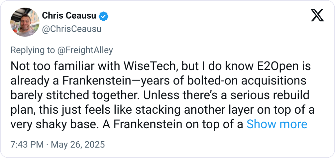 The big picture: This acquisition makes WiseTech a much more serious player in the end-to-end global supply chain space. Offering both execution and visibility in one stack.