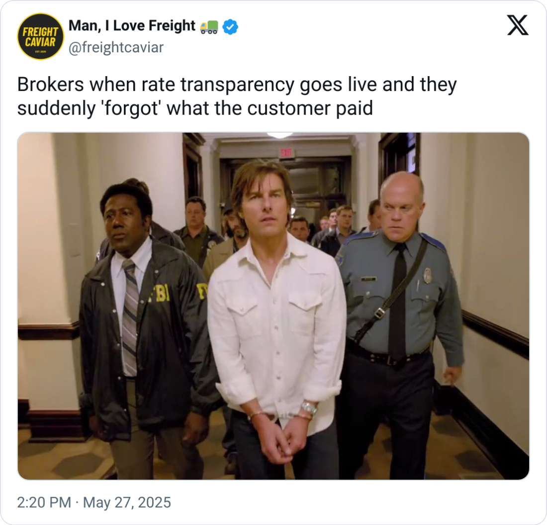 š Small Freight Brokers See Volume Gains. New Q1 2025 data from the TIA shows freight brokers continue to face tightening margins despite varied performance by size. Small brokers (<$16M) grew shipments 30.8% and revenue 12.6%, but saw gross margins fall 4.7%. Mid-sized brokers posted modest volume growth but suffered the steepest margin decline at 11.6%. Large brokers faced volume and revenue drops, with only slight improvement in invoice pricing. Overall, industry revenue is down 11% year-over-year. āMargins will continue to slide further over the next 10 to 20 years as technology (AI?) nibbles them away,ā said Tim Higham, CEO of AscendTMS.