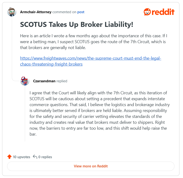"If the Supreme Court adopts the 9th Circuit's view, the non-asset model faces an existential crisis. Small brokers cannot insure against $50M verdicts." — Transportation Defense Counsel