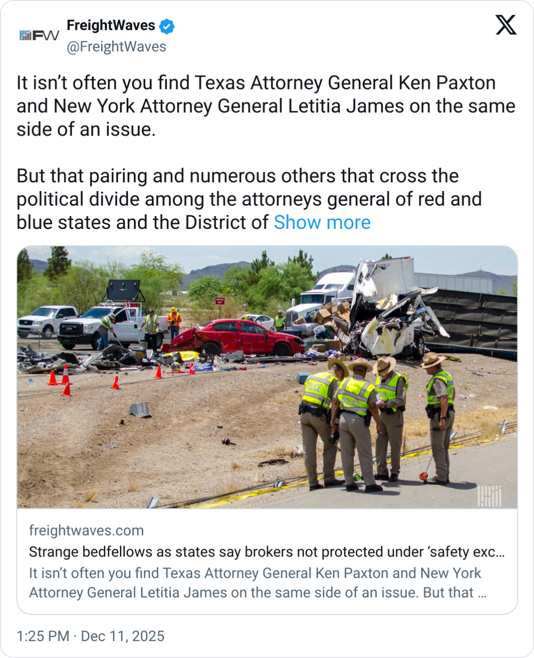 The Gist: A bipartisan coalition of 30 state Attorneys General, led by Ohio and Illinois, just filed a fiery amicus brief urging the Supreme Court to let accident victims sue freight brokers for negligence.