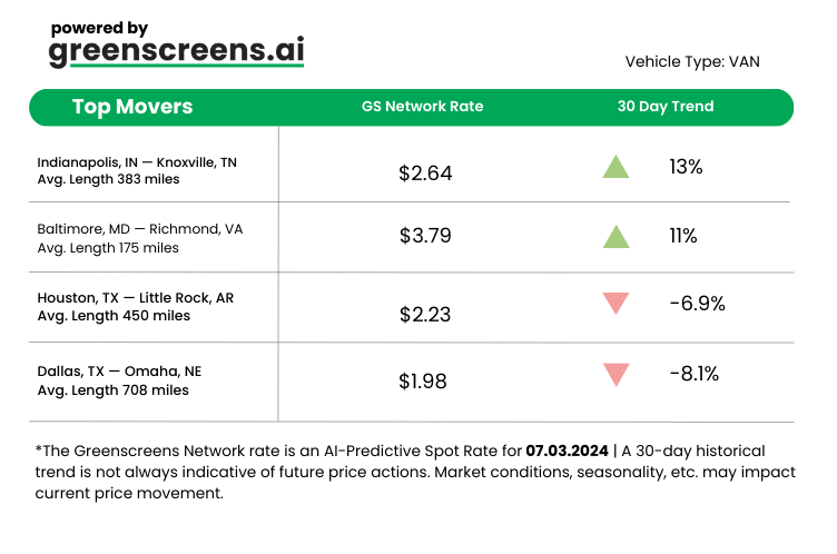 *Greenscreens.ai, forecasts real-time truckload buy prices that are suited to each freight brokerage's purchasing power using AI and machine learning. Its engine takes into account over 130 attributes and data points in each rate forecast.