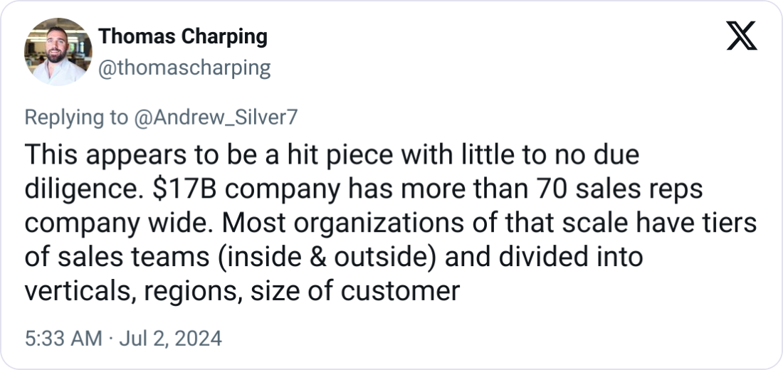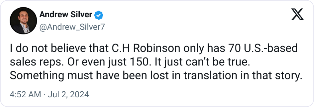 Industry experts on social media were doubtful about the reported numbers, suggesting that a company of C.H. Robinson's size likely has a more extensive sales force across various divisions and roles.