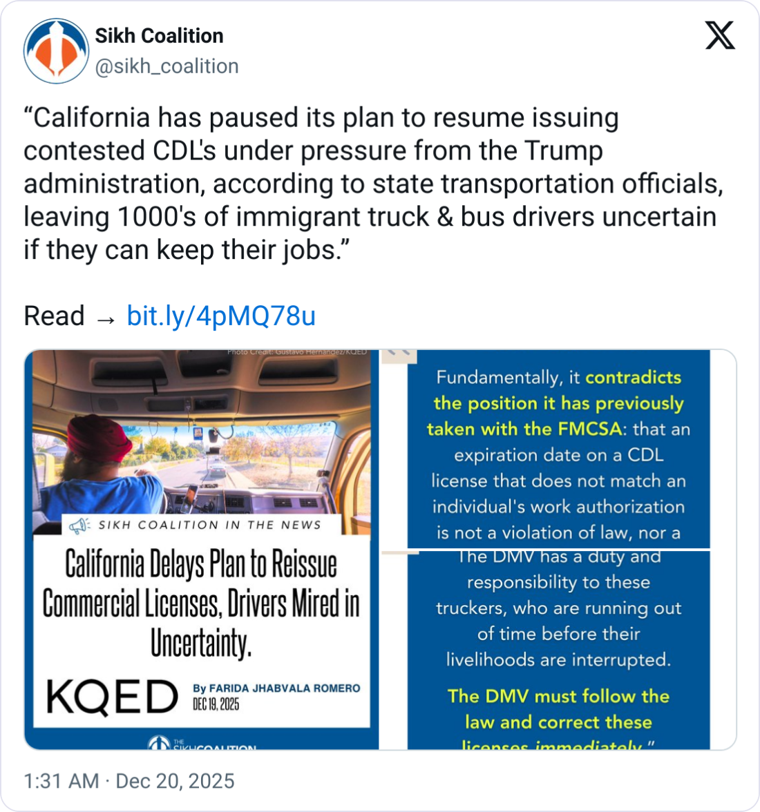 Happy Monday. Californiaās plan to reissue thousands of non-domiciled CDLs has been paused again after federal regulators stepped in ā that and more in today's feature.