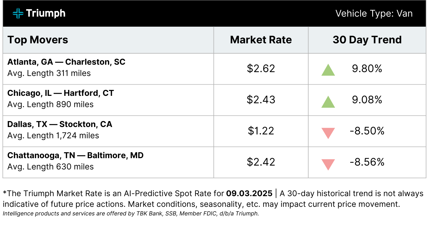 🌪️ Market Mayhem: Diesel, Demand, and a Freight Fog. Last week was a freight mood swing. Diesel prices jumped, truckload demand increased before Labor Day, and August freight metrics dipped. Meanwhile, ocean shipping rates tanked 68%, signaling soft demand ahead of peak season. Retailers are pulling back early, fueling fear of a muted Q4. It's a mixed bag of signals out there, keeping everyone on their toes as we head into the busiest time of the year.