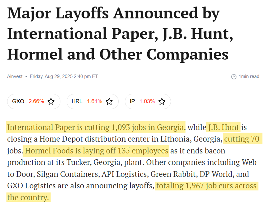 📉 Logistics Layoffs Continue. J.B. Hunt, Hormel, and International Paper announced more job cuts, citing weak freight demand and high borrowing costs.