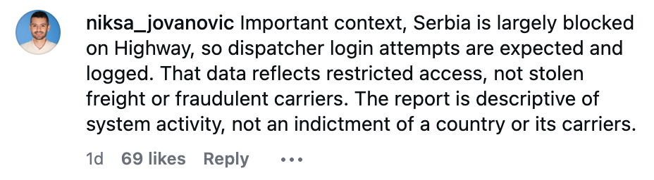 We shared this data on Instagram as a carousel highlighting Serbia’s placement in the top three. While the information itself didn’t surprise many industry insiders, it did prompt strong reactions, particularly given FreightCaviar's sizable Serbian audience.