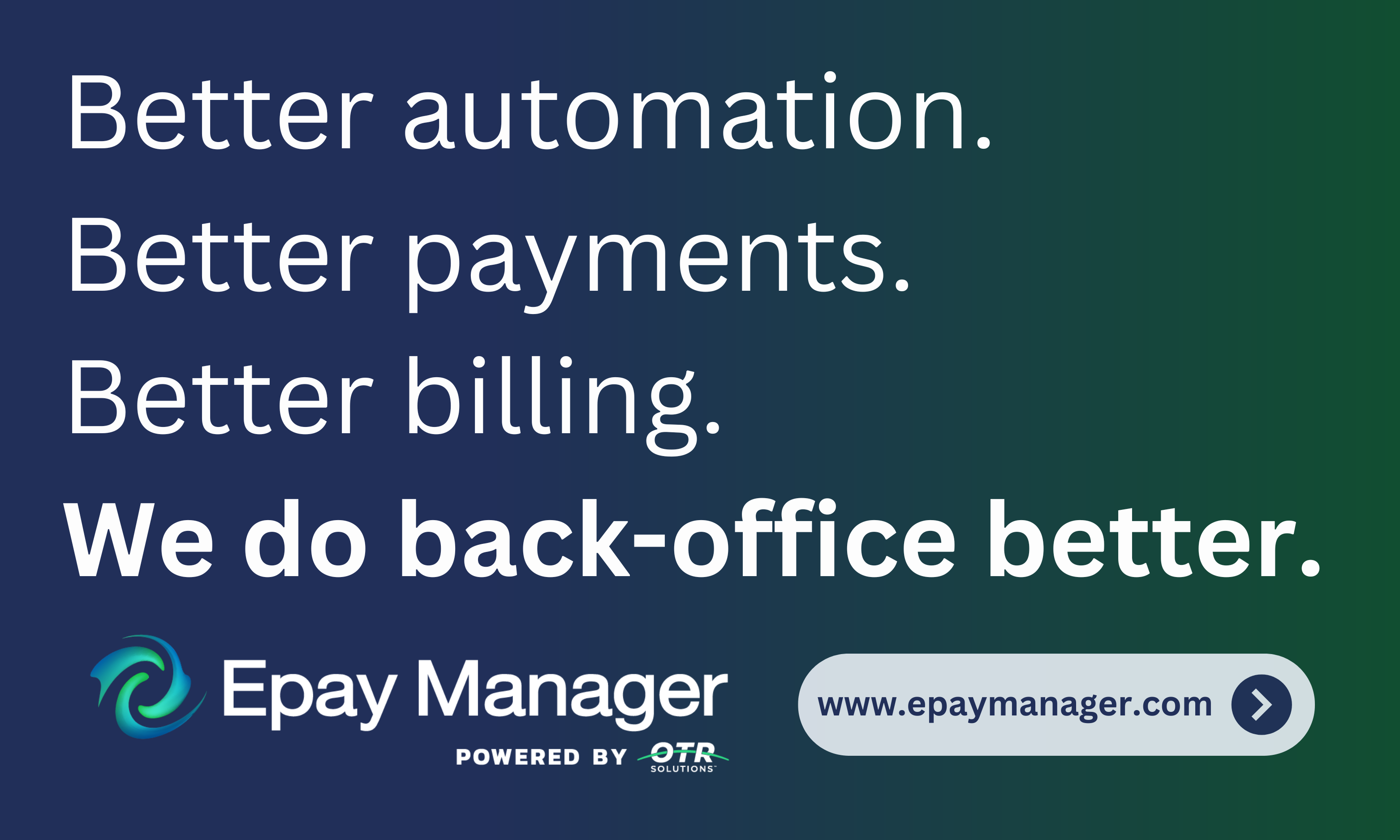 Epay's platform is designed to virtually eliminate operational reliance on email and the need to audit carrier invoices for rate and delivery information, thanks to its Audit Proof Invoicing feature. Backed by the power of OTR Solutions, Epay Manager now offers integrated AI-driven NLP automation and working capital solutions.