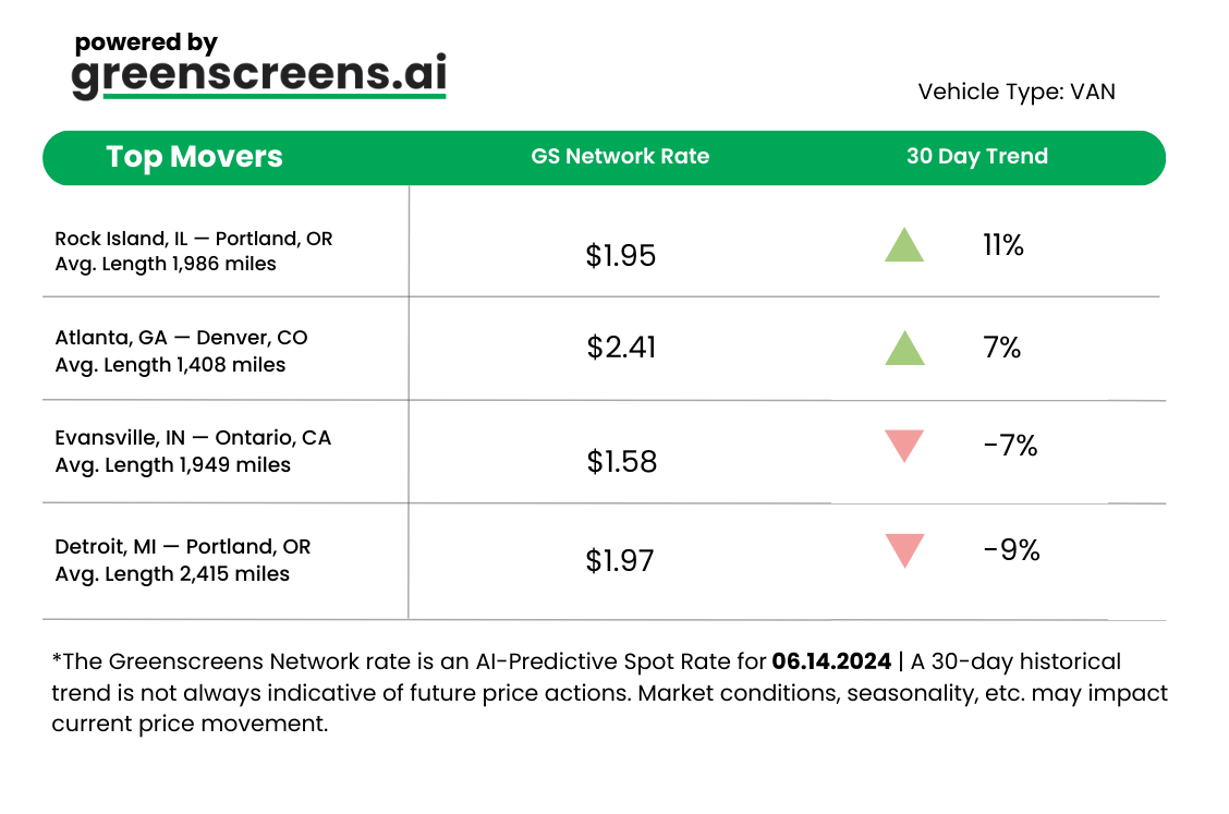 *Greenscreens.ai, forecasts real-time truckload buy prices that are suited to each freight brokerage's purchasing power using AI and machine learning. Its engine takes into account over 130 attributes and data points in each rate forecast.