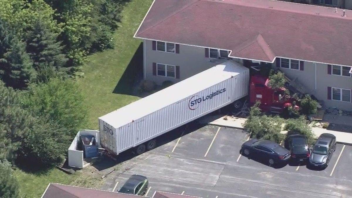 🚚 Semi Crashes Into Apartment Building. A semi skidded off I-80 in Illinois, smashing into an apartment complex after a suspected mechanical failure, causing significant damage but no injuries.