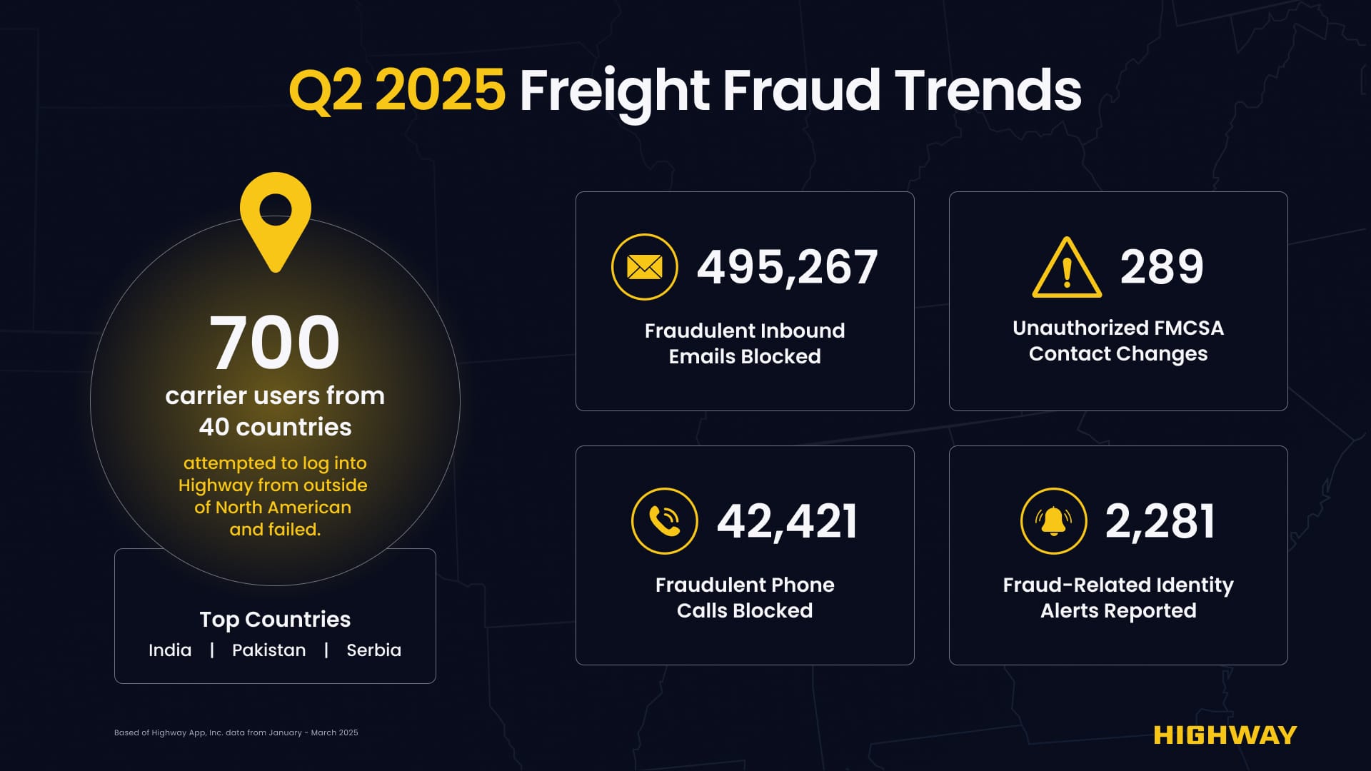 With compromised inboxes and sold MCs standing out as the top attack vectors, Highwayâs Q2 Freight Fraud Index breaks down the patterns, warning signs, and the steps brokers and carriers should take now to stay protected.