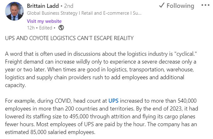 Overall, the acquisition of Coyote initially brought strategic advantages to UPS, particularly in terms of technological capabilities and expansion into new market segments. However, post-acquisition challenges reveal the complexities of integrating a dynamic and cyclical business like freight brokerage into a larger, more established corporation like UPS.