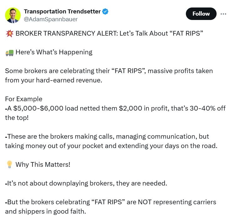 Flashback to Trumpās first term: he openly supported truckers protesting alleged broker price gouging and lack of transparency. Now, with the Owner-Operator Independent Drivers Association (OOIDA) still pushing for reforms, the pressure is mounting.