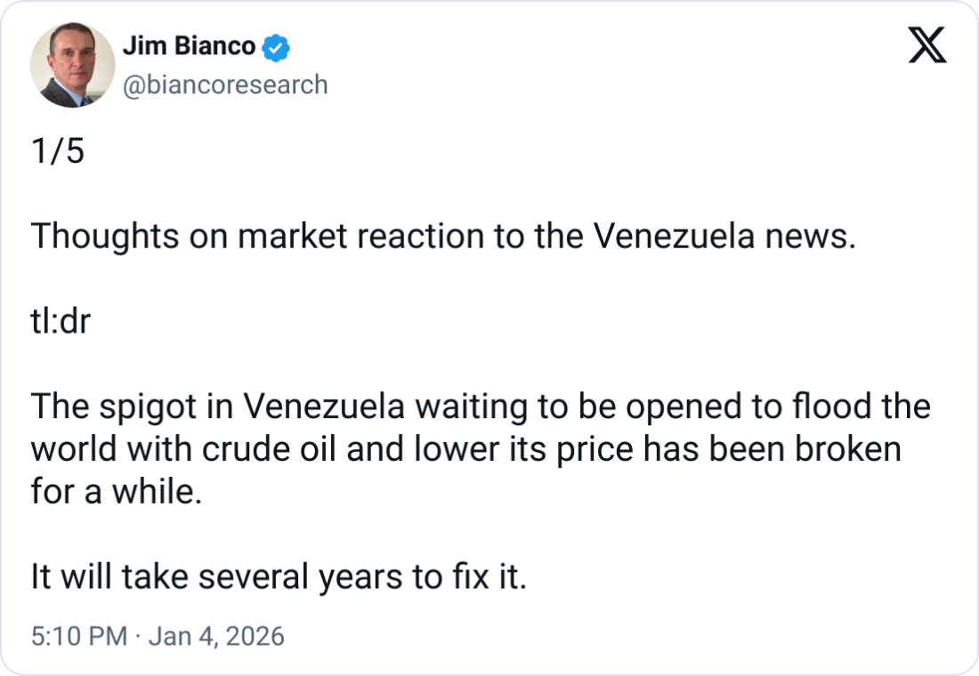 Experts like Jim Bianco and analysts at Capital Economics warn that "regime change is not regime change for oil," meaning it will take billions of dollars and years to restore production.