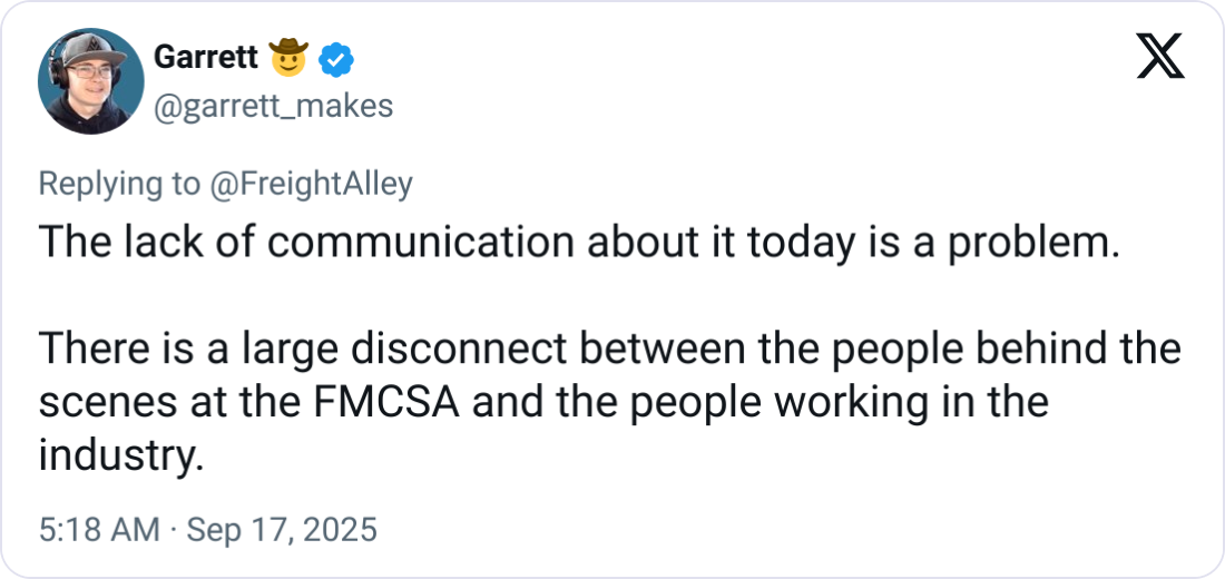 As the news spread, many tried to figure out what may have gone wrong. There were suggestions that the outage could be tied to the phase-out of MC numbers and the FMCSA's ongoing registration modernization under the new Motus system.