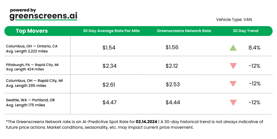*Greenscreens.ai, forecasts real-time truckload buy prices that are suited to each freight brokerage's purchasing power using AI and machine learning. Its engine takes into account over 130 attributes and data points in each rate forecast.