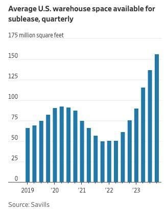 ๐ญ More Warehouse Space Available. U.S. warehouse subleases hit a record 156 million square feet.