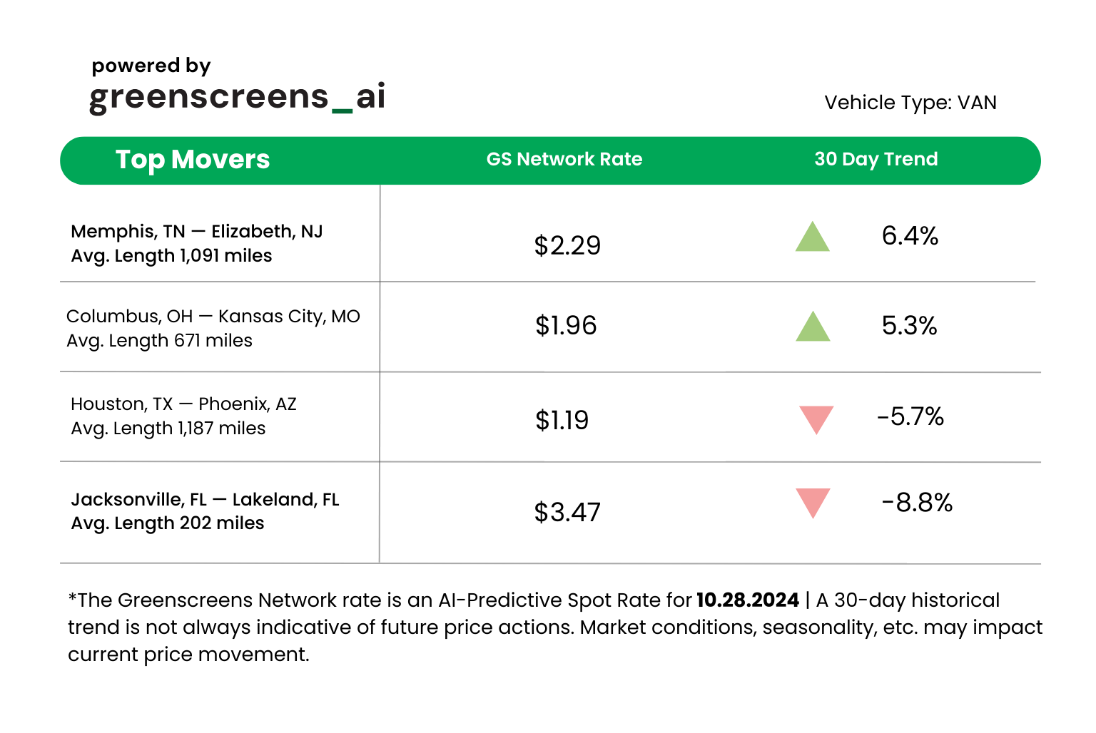 *Greenscreens.ai, forecasts real-time truckload buy prices that are suited to each freight brokerage's purchasing power using AI and machine learning. Its engine takes into account over 130 attributes and data points in each rate forecast.