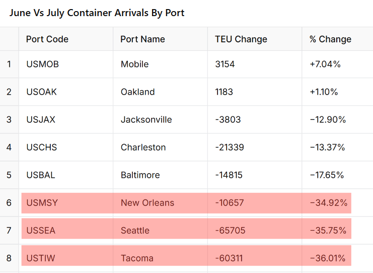 🚢 Tariff Deadline Pressures Small Ports and Importer Cash Flow. As the August tariff hikes loom, shippers are shifting cargo to major U.S. ports, hurting smaller gateways like Oakland, Seattle, and New Orleans, which saw volume drops of over 30%. “This is not a seasonal dip, but a market recalibration,” said Oakland Port Director Bryan Brandes. To manage cash, importers are also ramping up supply chain financing and off-book inventory strategies, especially in automotive, retail, and healthcare sectors. Wells Fargo’s Jeremy Jansen noted growing pressure to extend payment terms. With sourcing shifting to Vietnam and India, smaller ports and domestic carriers may face longer-term strain.