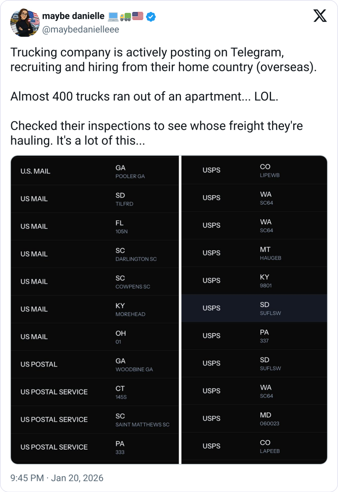 Concerns continues to mount around carrier vetting, labor sourcing, compliance, and how large fleets can move freight while operating outside traditional infrastructure norms.