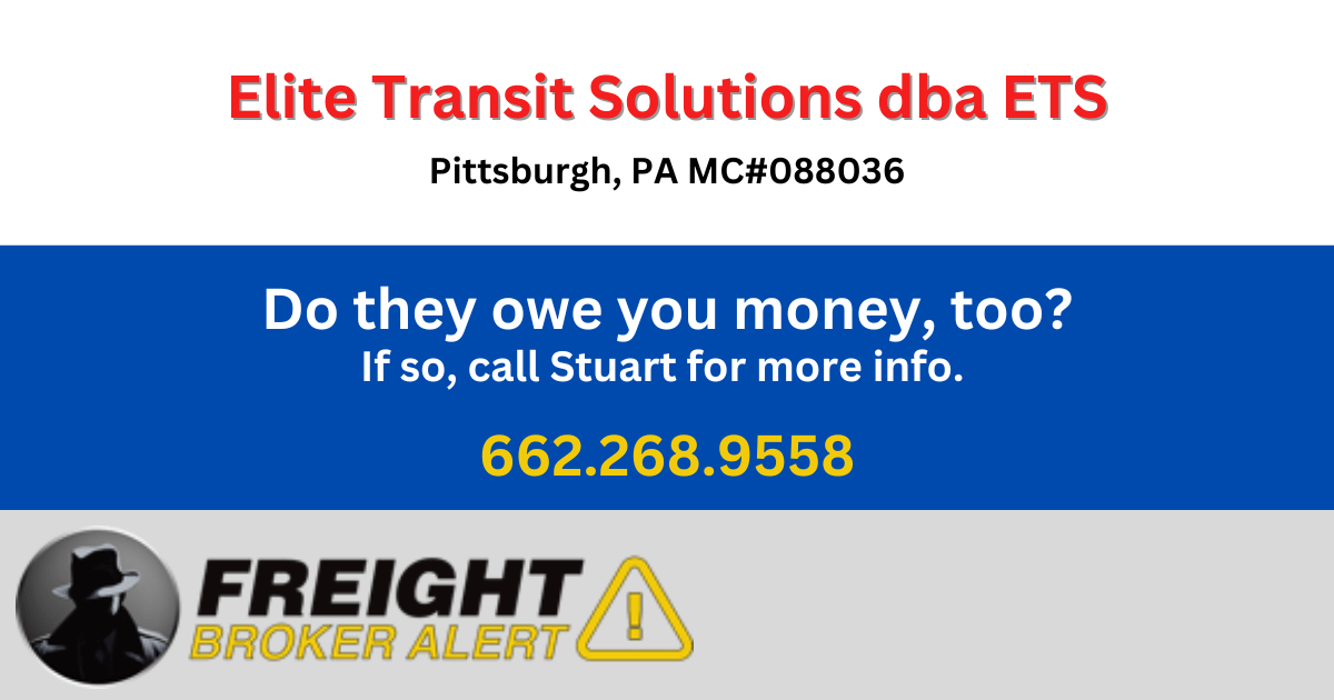 Elite Transit Solutions, once an up-and-coming Pittsburgh-based freight brokerage with locations in Chicago, Charlotte, and Phoenix, now faces a grim reality.