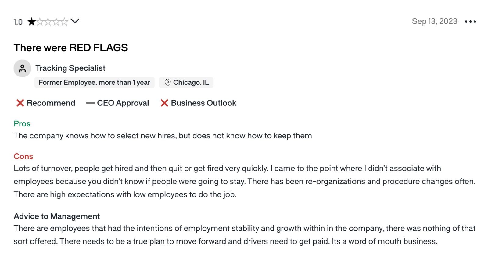 A recent Glassdoor review from a former employee stated, "There needs to be a true plan to move forward, and drivers need to get paid. It's a word-of-mouth business."