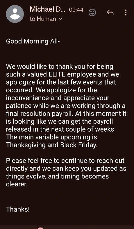 Elite Transit Solutions, once a thriving freight brokerage in Pittsburgh, is teetering on the brink of collapse. Its CEO, Michael D. Johnson, is holding on amidst financial tumult, leaving ex-employees and carriers unpaid and anxious. The firm's promise of imminent payroll release, as conveyed in Johnson's email, looms against the backdrop of Thanksgiving and Black Friday, leaving many in limbo.